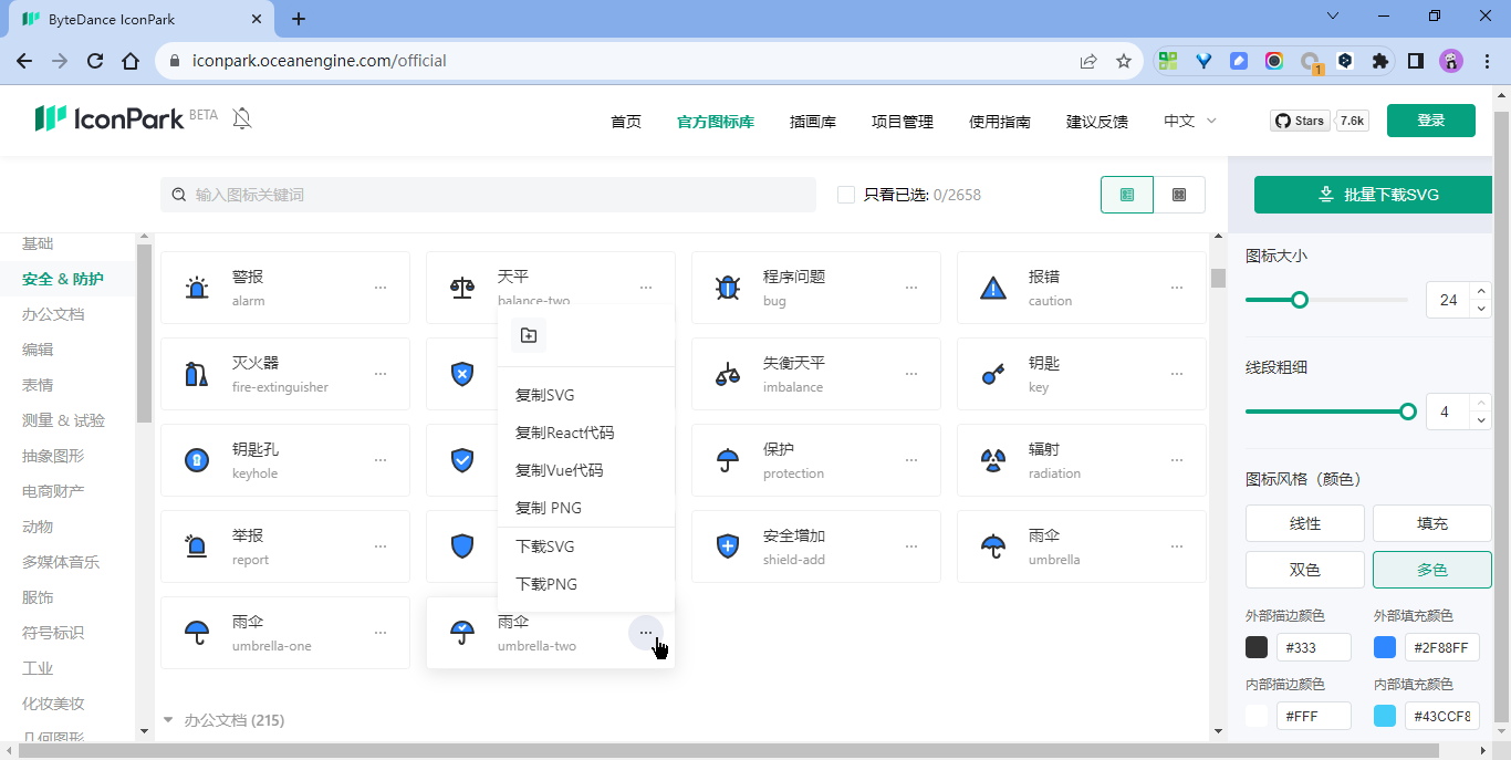 - 自定义颜色、图标大小、SVG、PNG
