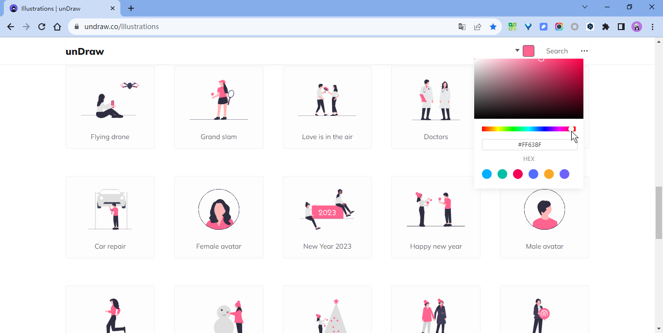 - 开源插画、自定义颜色、扁平风格、在线换色、SVG、PNG