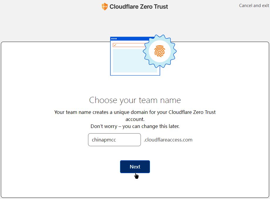 - 输入一个自定义的Team名字,用于后续安装客户端使用