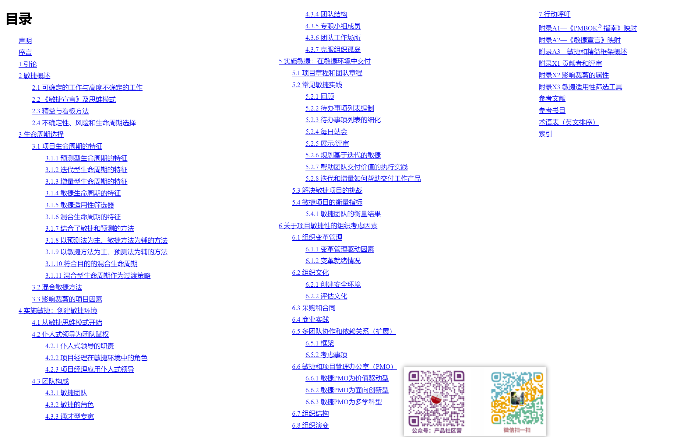 | 第1章 引言 | 敏捷的定义、价值驱动、生命周期选择模型(预测-混合-敏捷) |