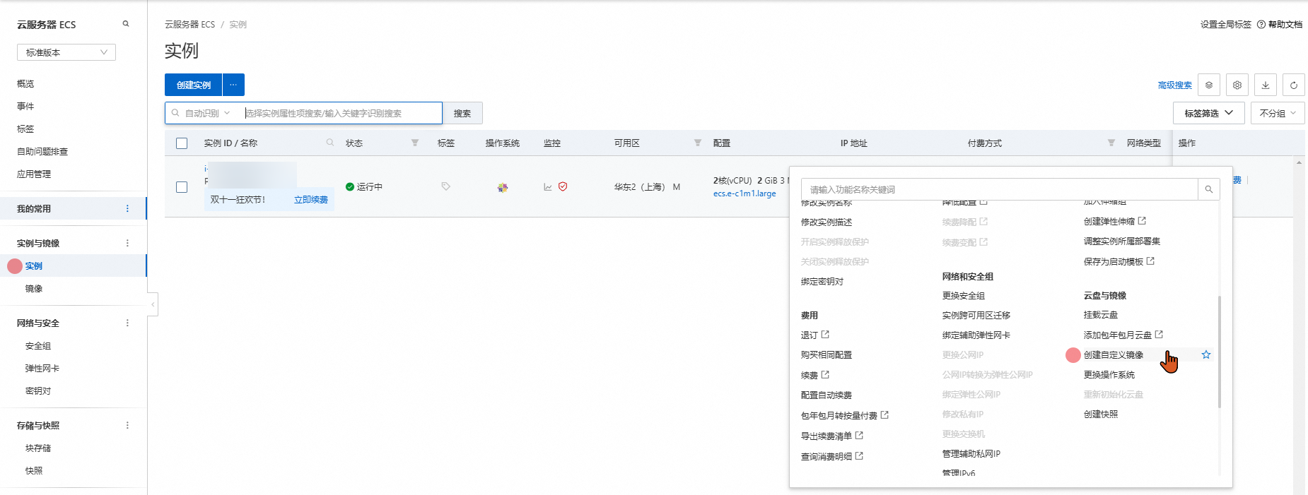 先给服务器创建自定义镜像,保存服务器数据。