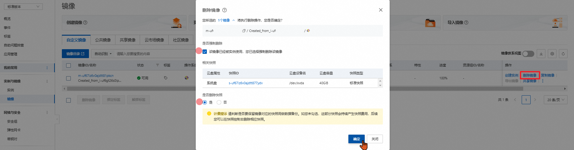 收费规则:镜像是不收费的、快照收费的;