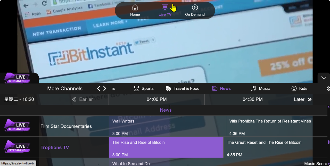 • 类别:精选、热门电视节目、犯罪、现实、新闻、游戏节目、经典电视节目
