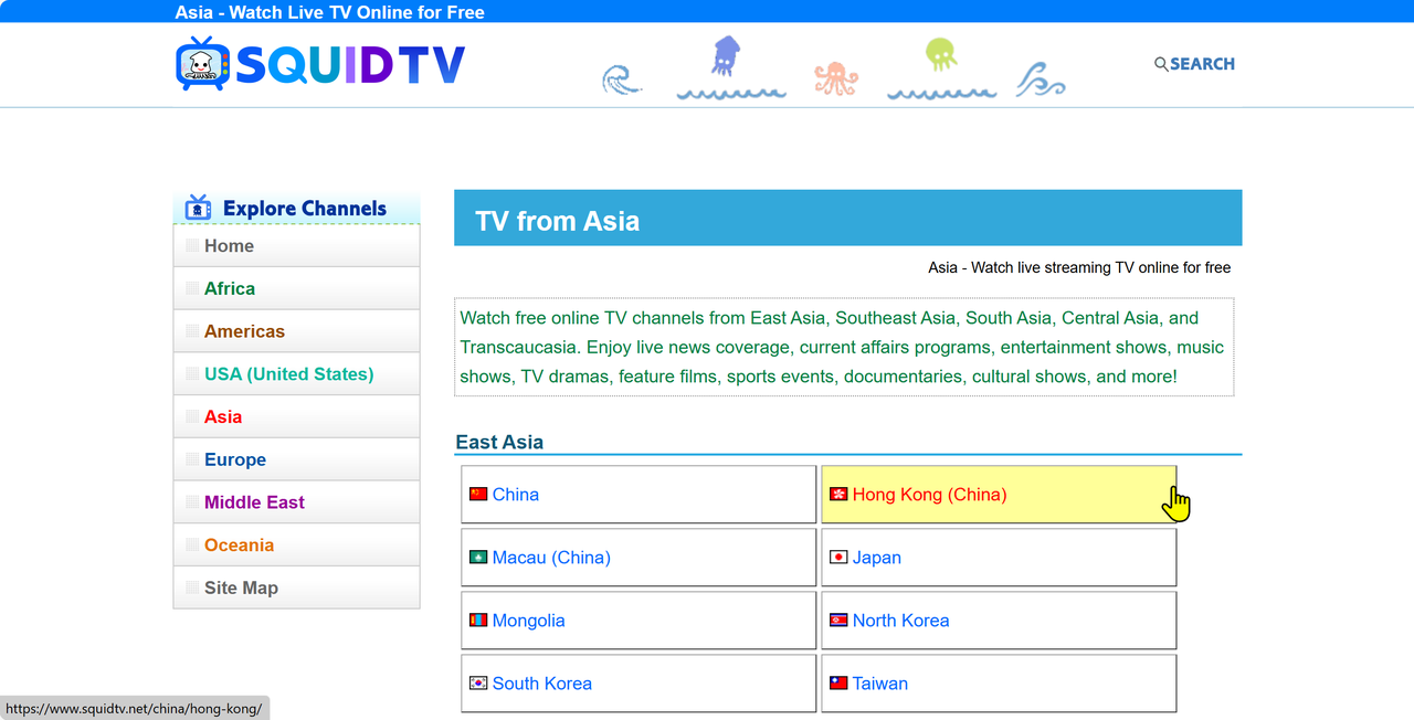 Squid TV 是一个在线电视直播选择,因为它提供数百个国际频道。Squid TV 的一大亮点是其内置的电子节目指南 (EPG),让导航变得轻而易举,点击通常会调整至频道官网进行播放。