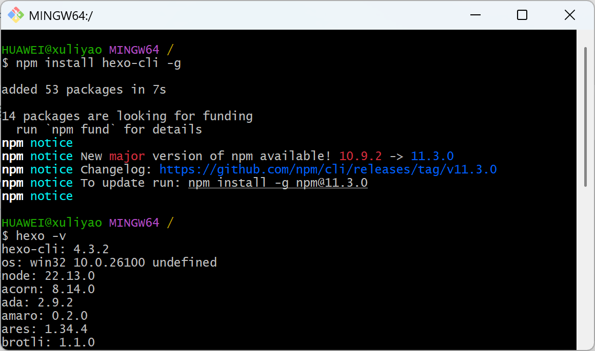 上述必备安装完成后,使用 npm 安装 Hexo。