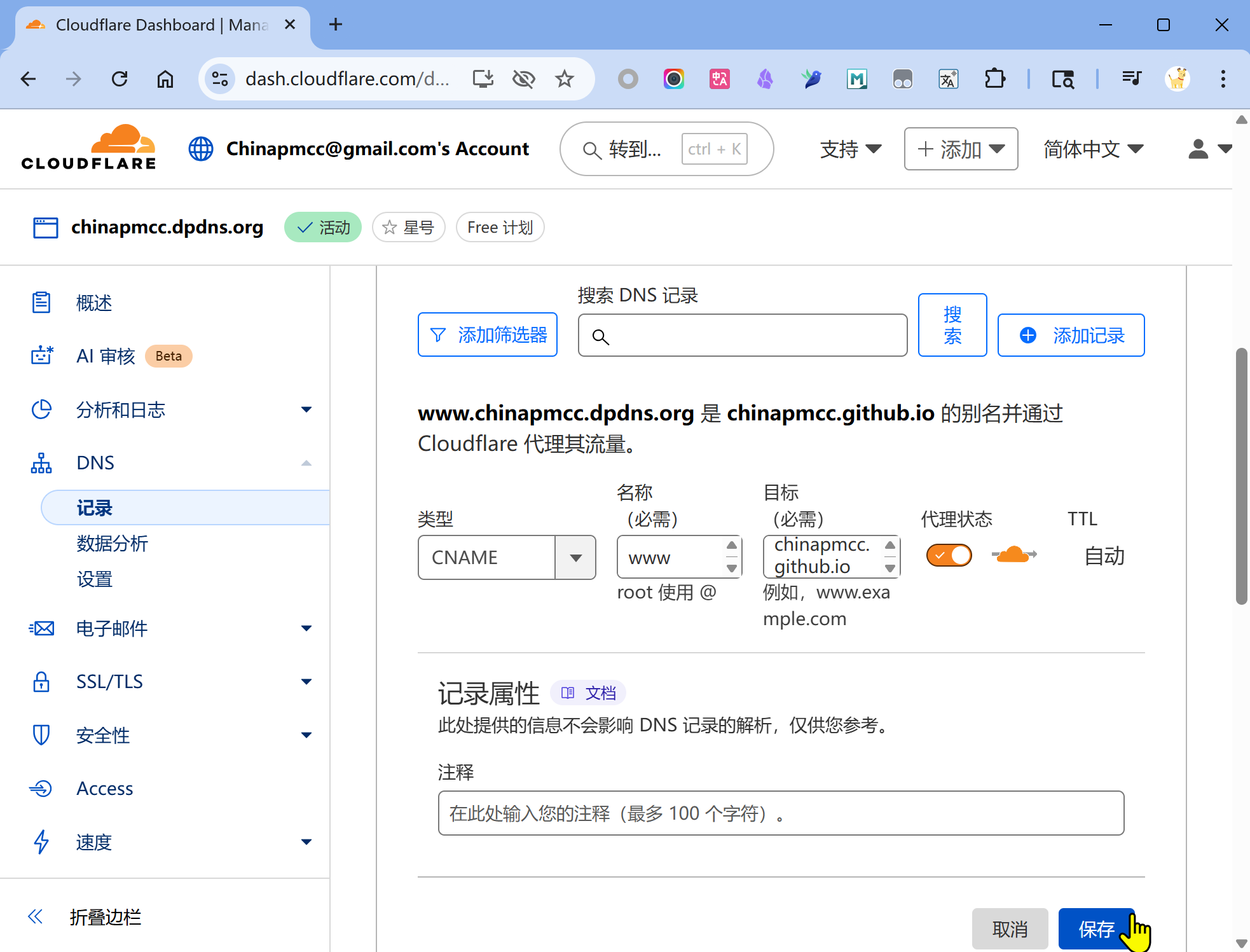 3.5 Cloudflare中开启DNS代理状态,就可以通过Cloudflare加速你的博客网站了