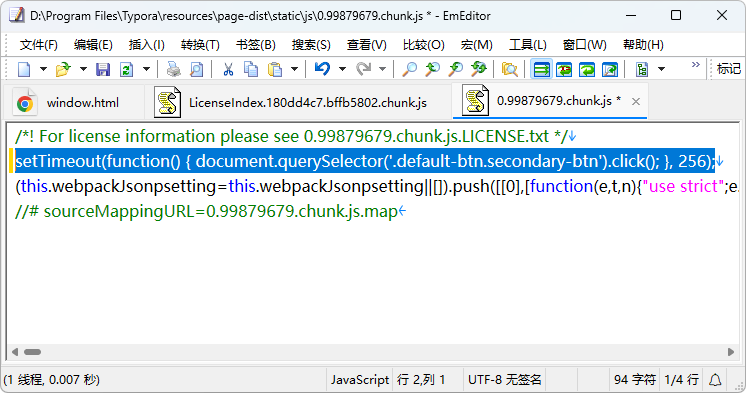 打开文件:Typora\resources\page-dist\static\js\0.99879679.chunk.js