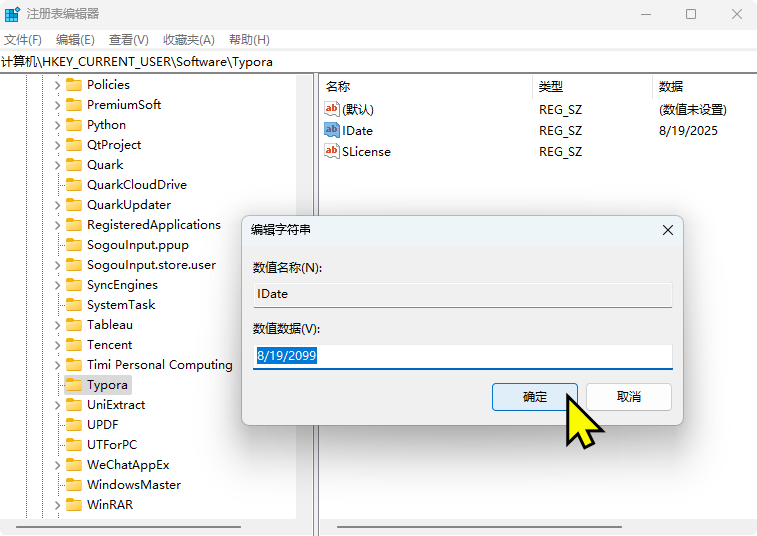 Typora 通过检查注册表中的 IDate 值,为安装日期,然后来计算试用时长。