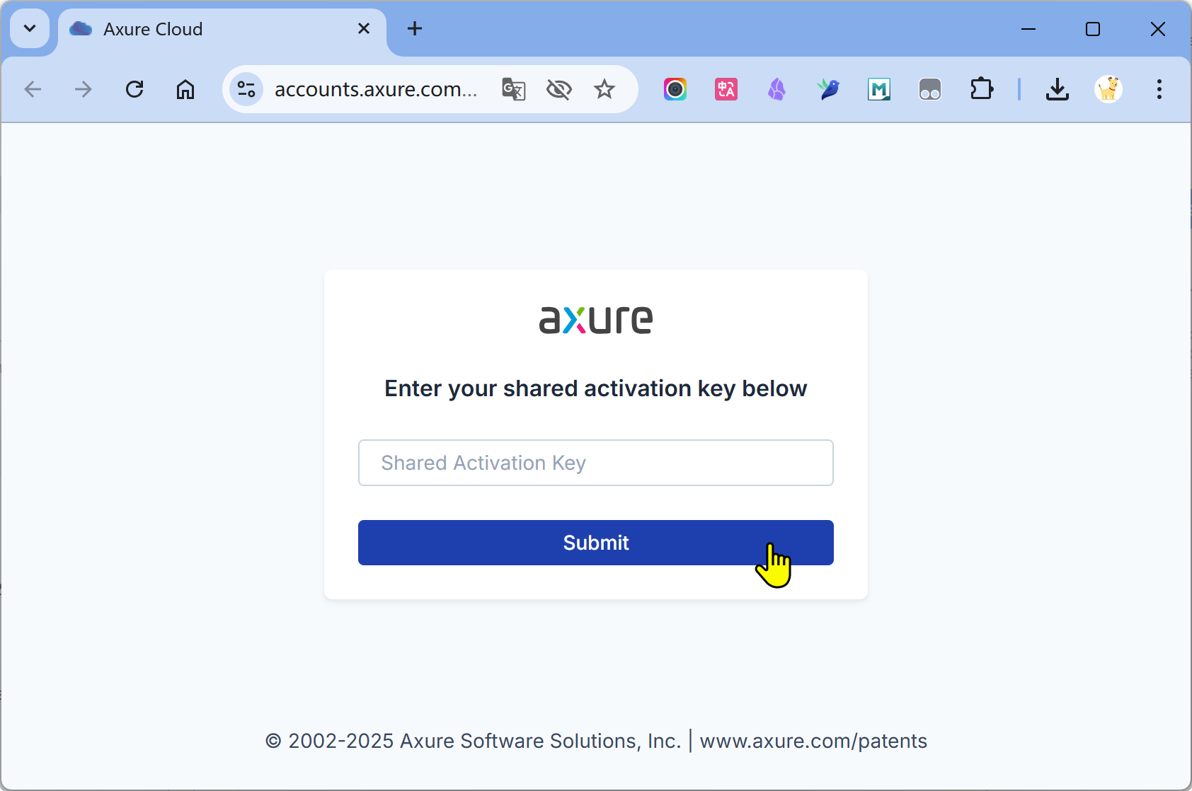 在输入框中输入共享激活码,点击Submit提交