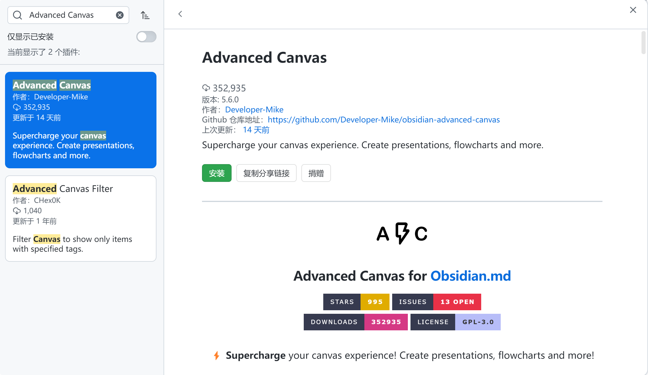 Github仓库地址:https://github.com/Developer-Mike/obsidian-advanced-canvas