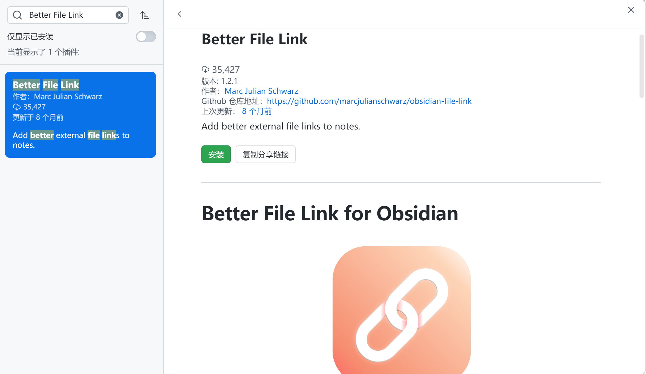 Github仓库地址:https://github.com/marcjulianschwarz/obsidian-file-link