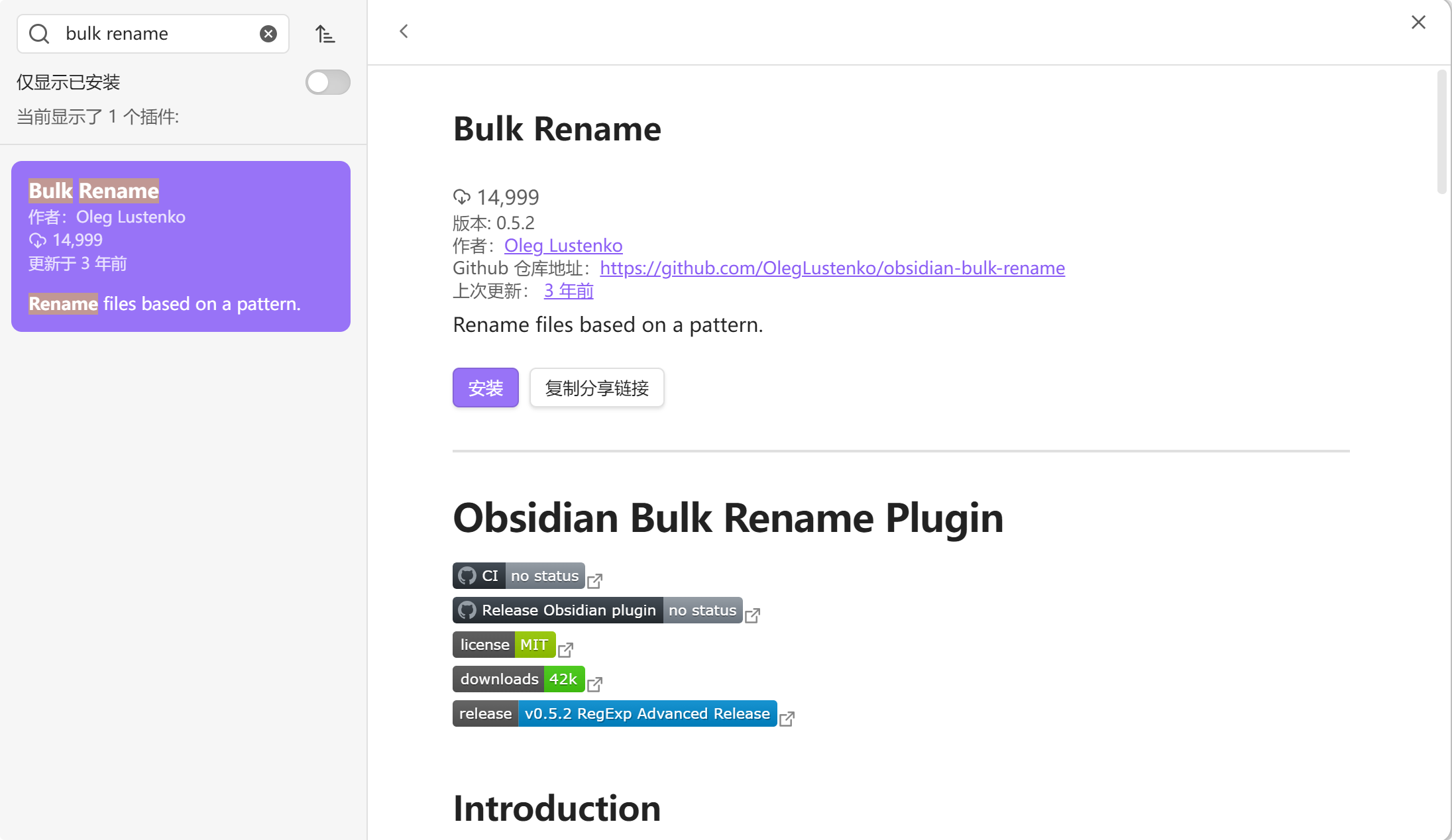 Github仓库地址:https://github.com/OlegLustenko/obsidian-bulk-rename