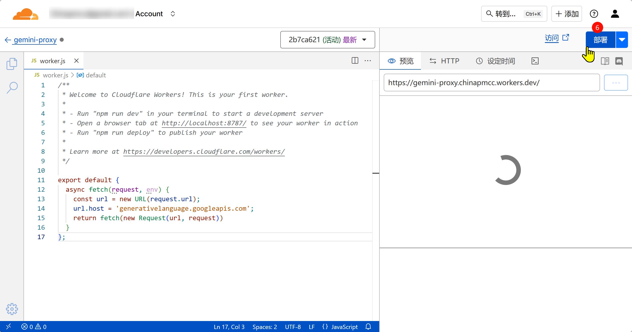 你访问 Cloudflare:你将本来要发送给 Gemini API 的请求,发送到一个由你控制的、Cloudflare 提供的域名上(例如