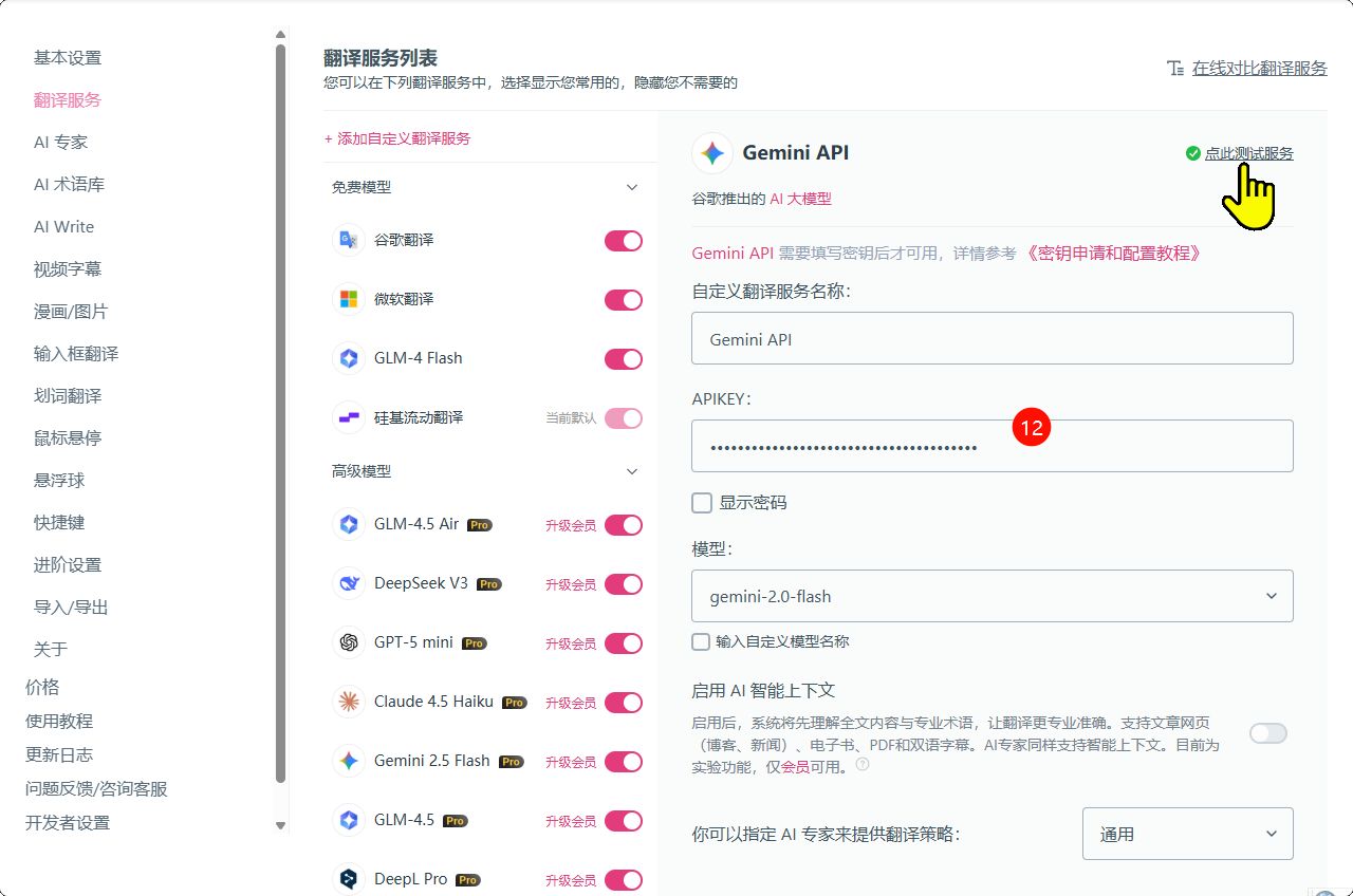 https://gemini.chinapmcc.com/v1beta/models/{model}:generateContent?key={key}沉浸式翻译 API配置