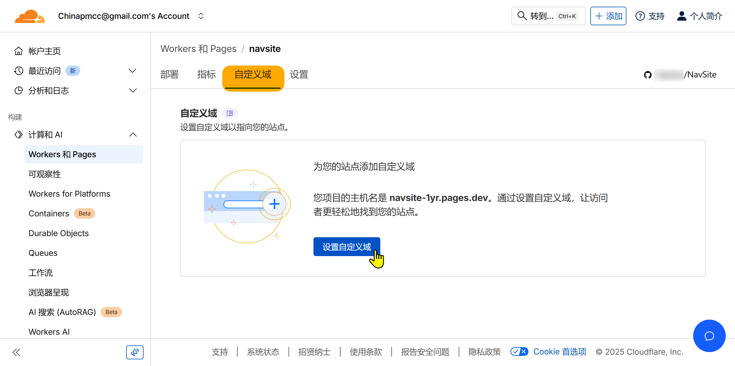 为避免pages.dev的域名无法访问,我们可以使用CF托管的自定义域名。
