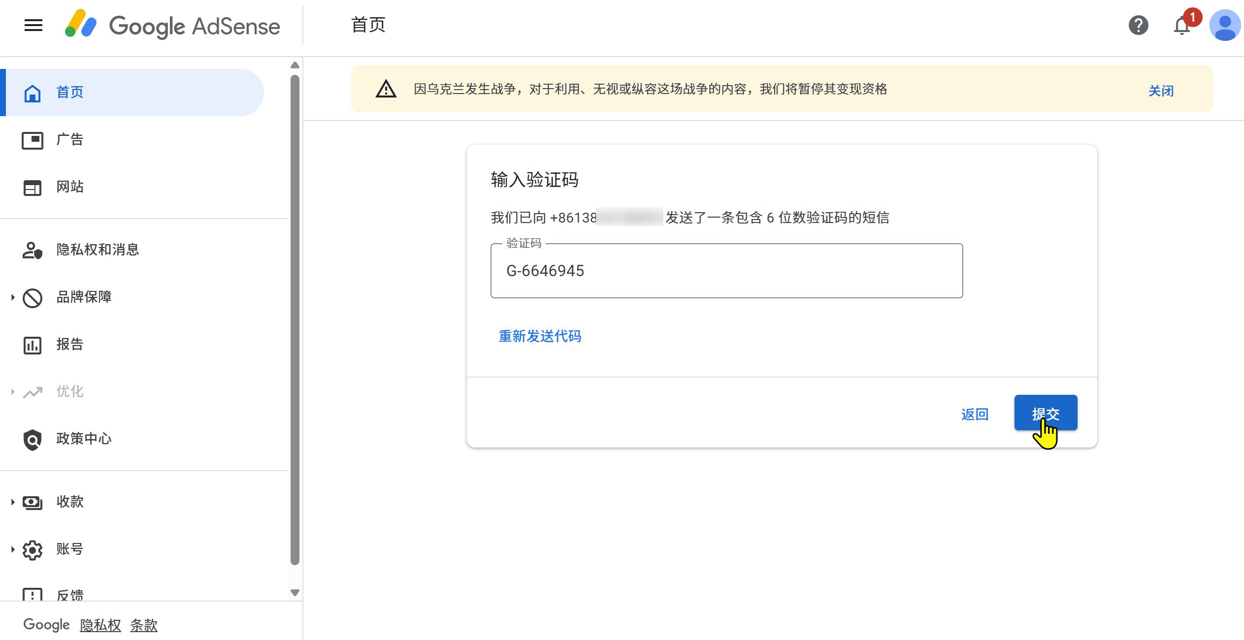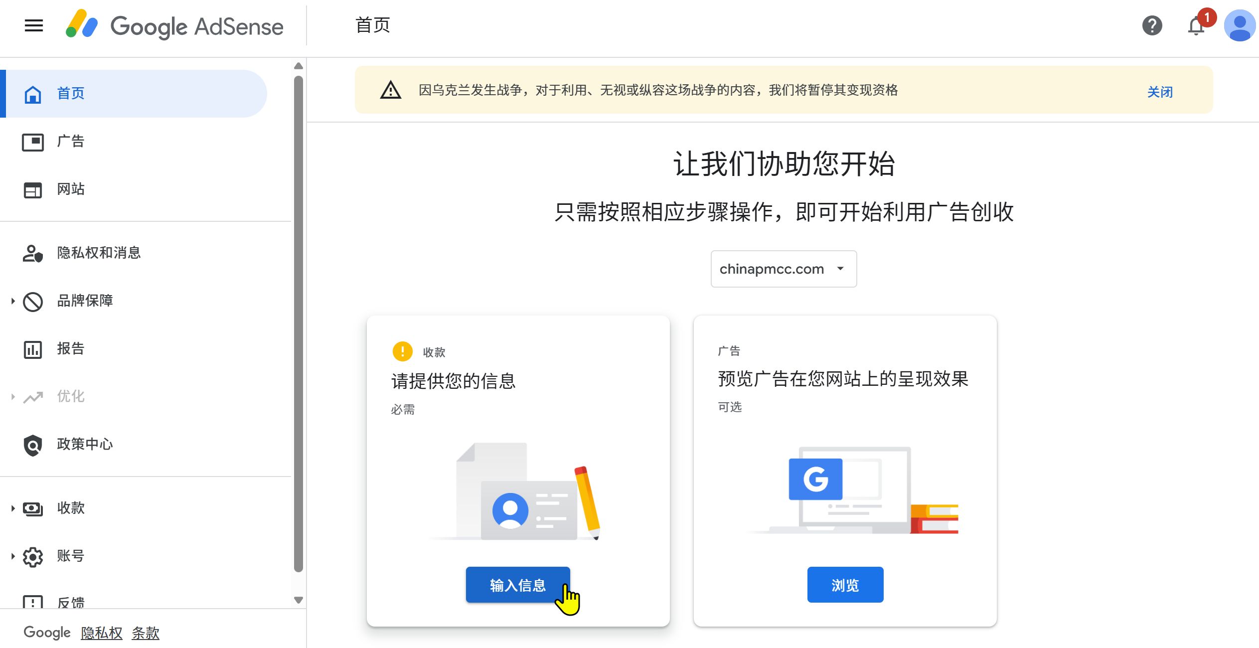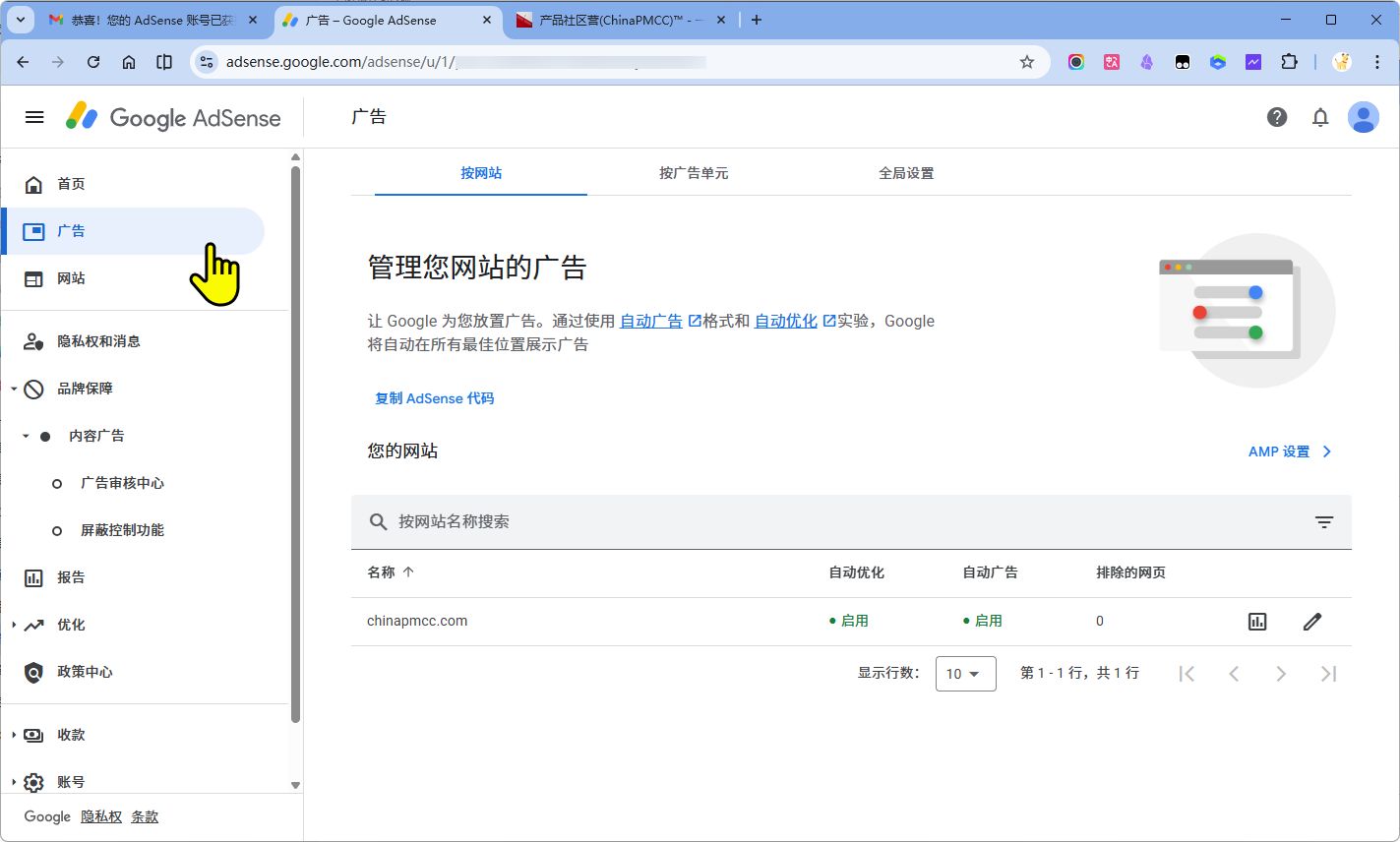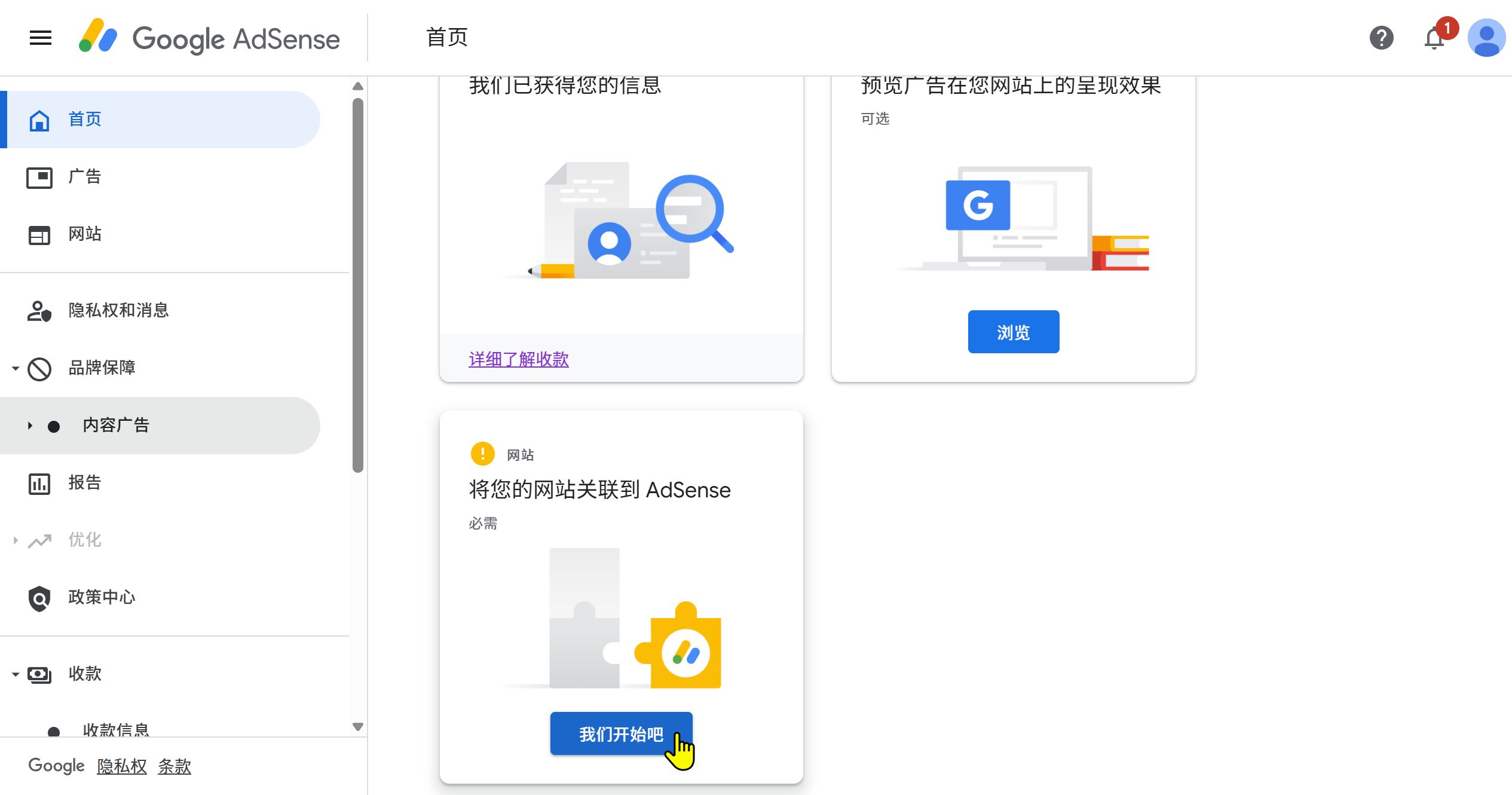 网站关联到AdSense