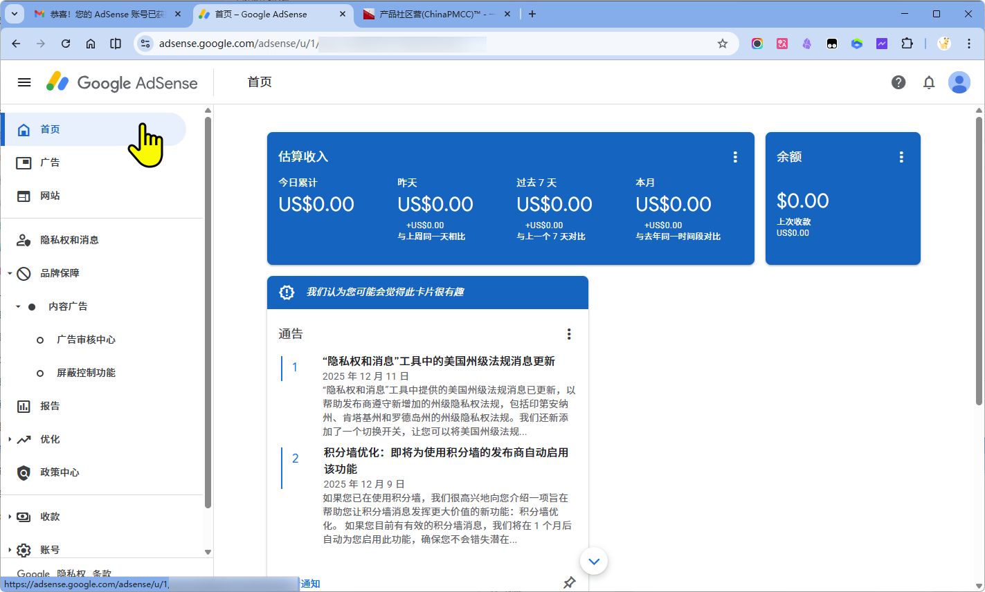 检查 ads.txt 文件: 确保您已在网站根目录正确上传了 ads.txt 文件。虽然获批初期没配置它也可能显示广告,但后台会出现警告,且长期会影响收益。