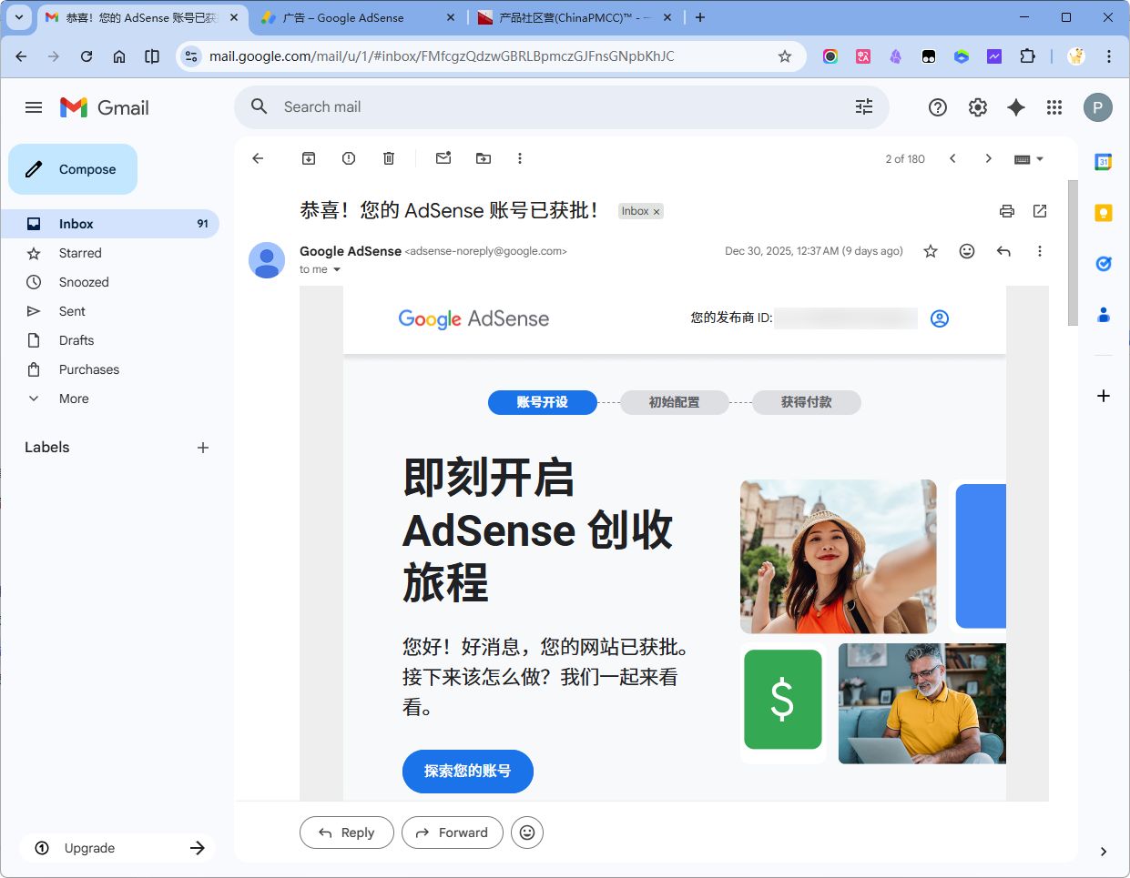 请完成下列步骤,让您的账号准备好接收第一笔 AdSense 付款。