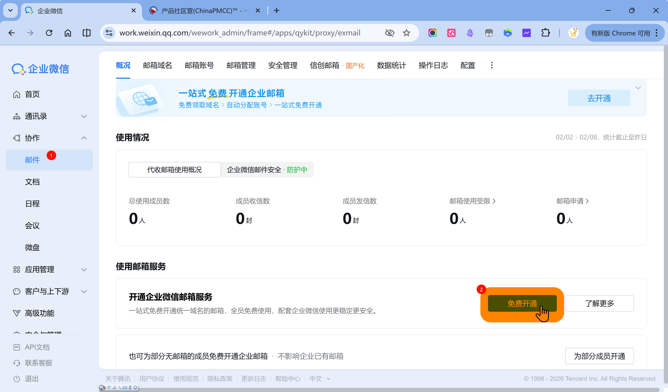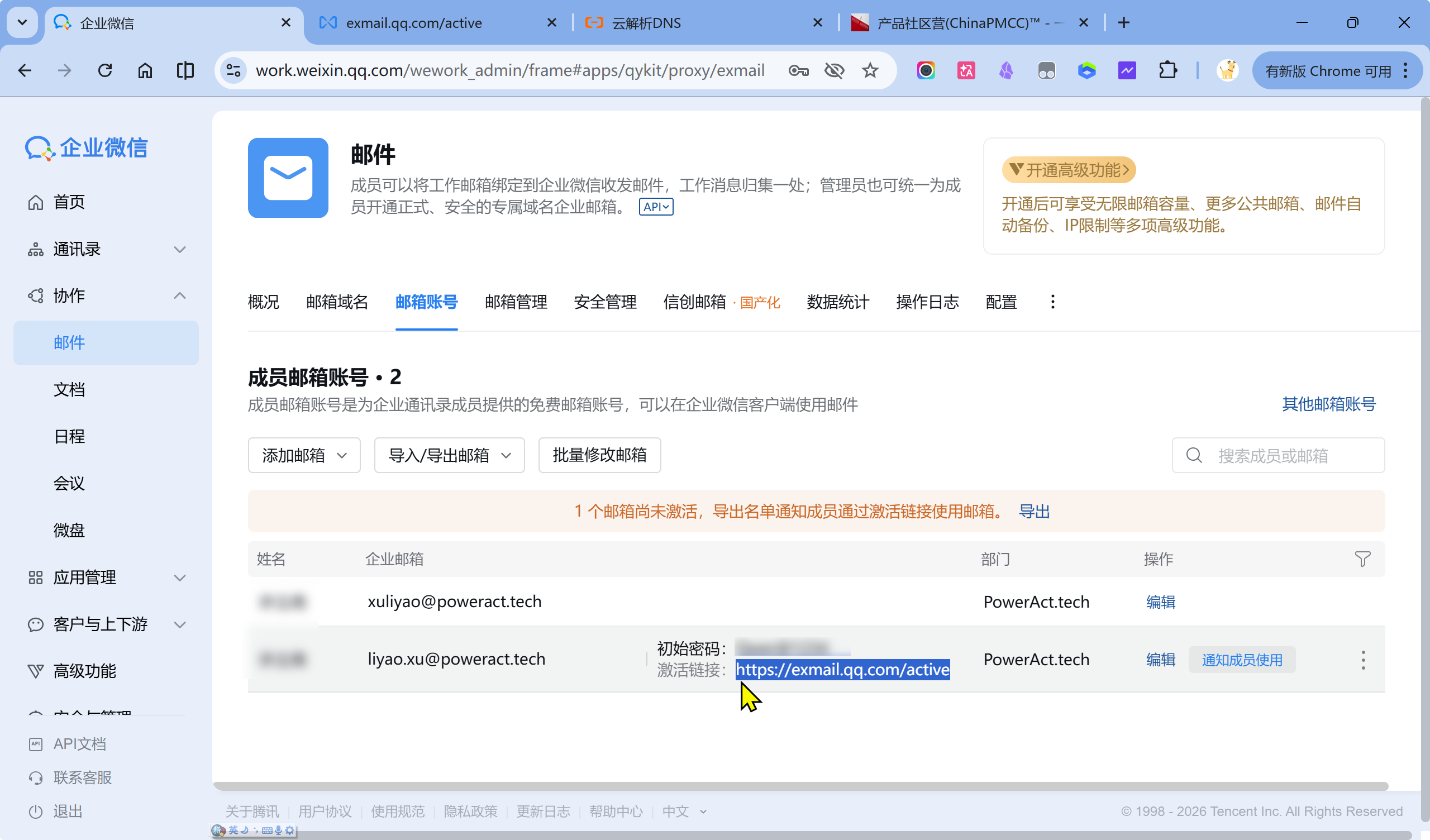 你已激活邮箱,如需使用多个邮箱地址,可在「企业微信管理后台-邮件-邮箱管理」设置别名邮箱或公共邮箱