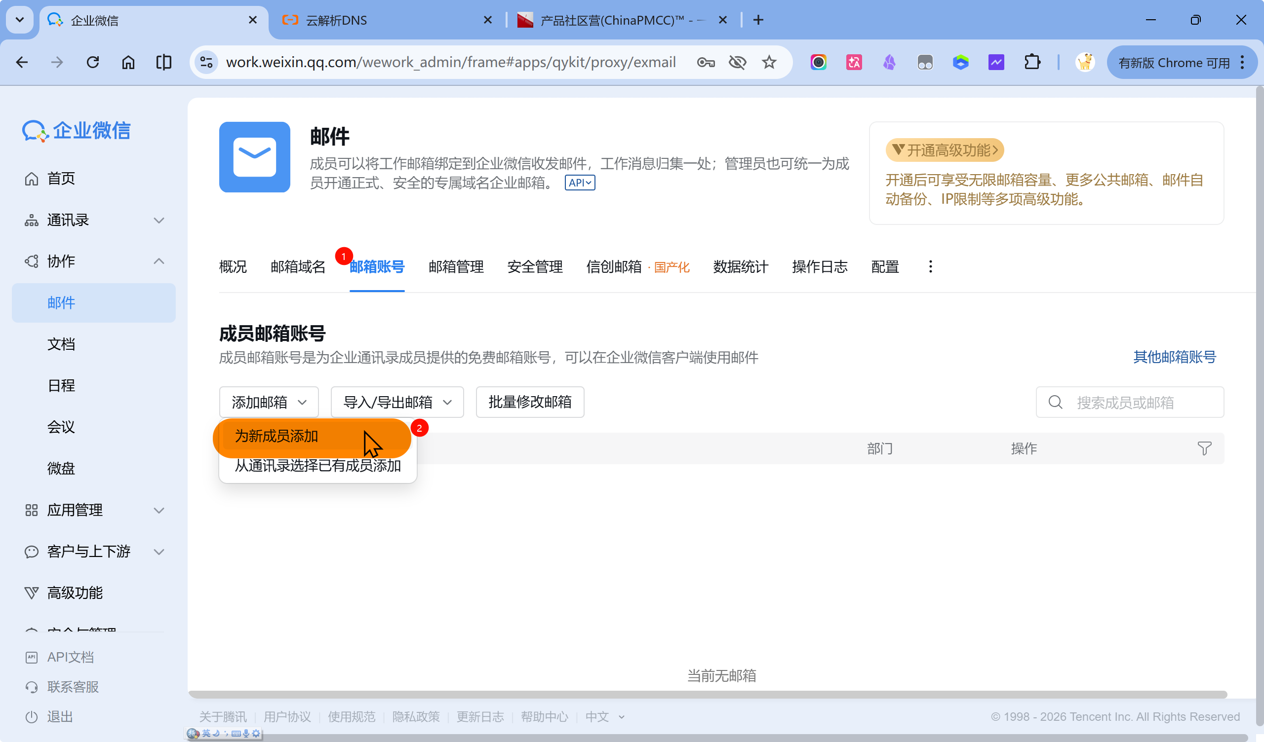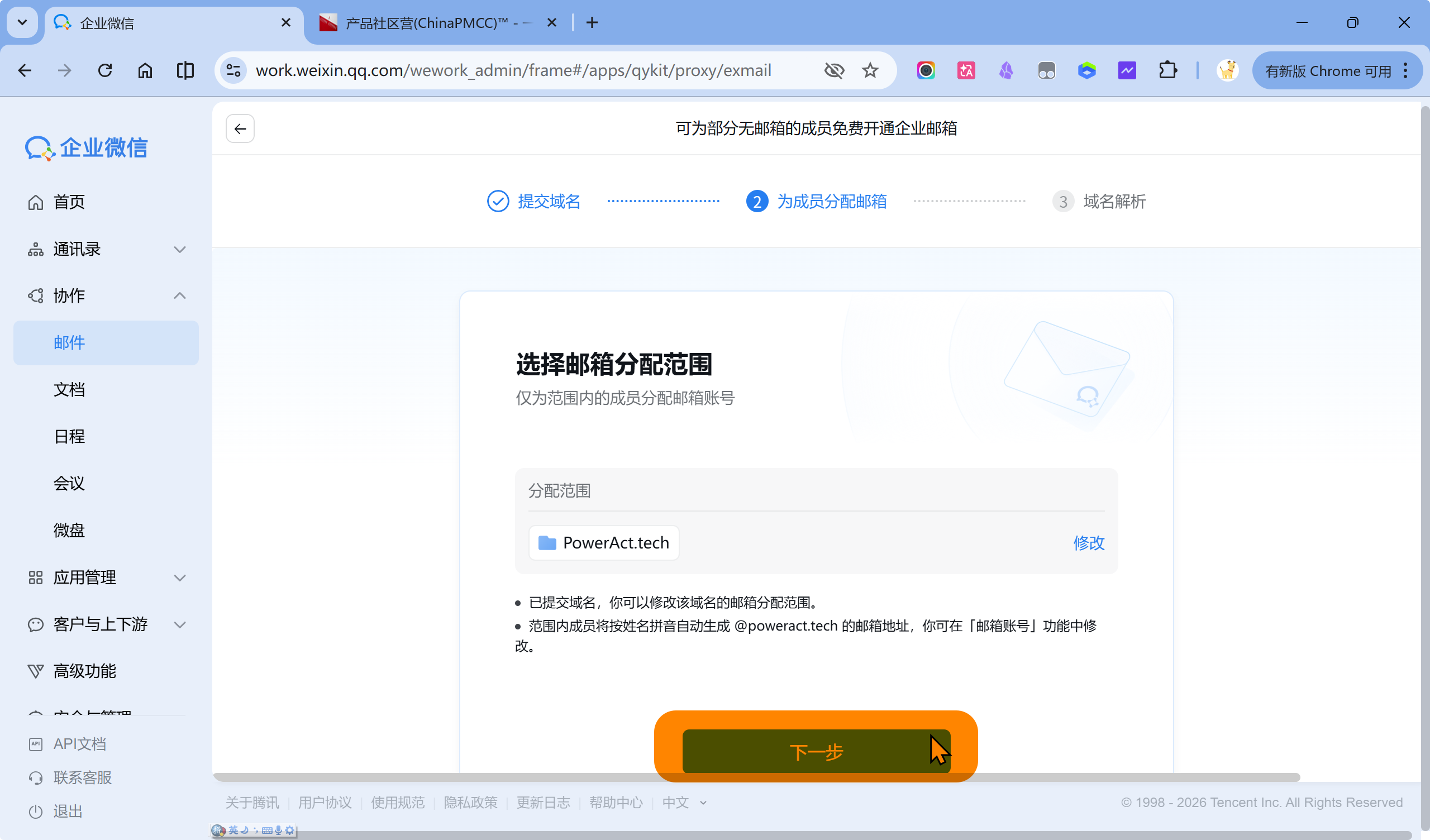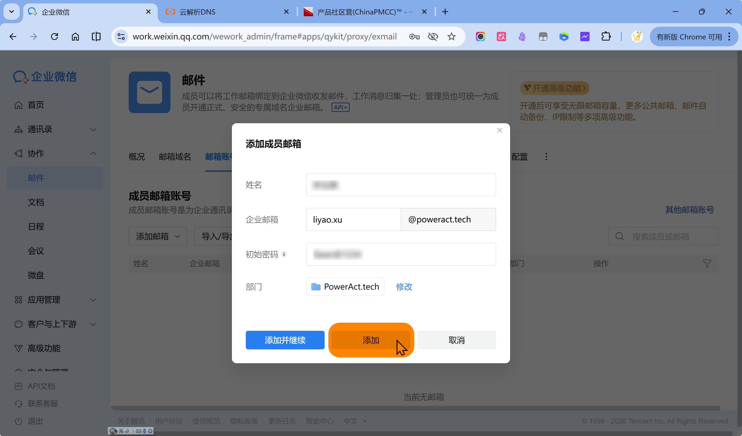 6. 弹窗中选择邮箱服务商=腾讯企业邮箱