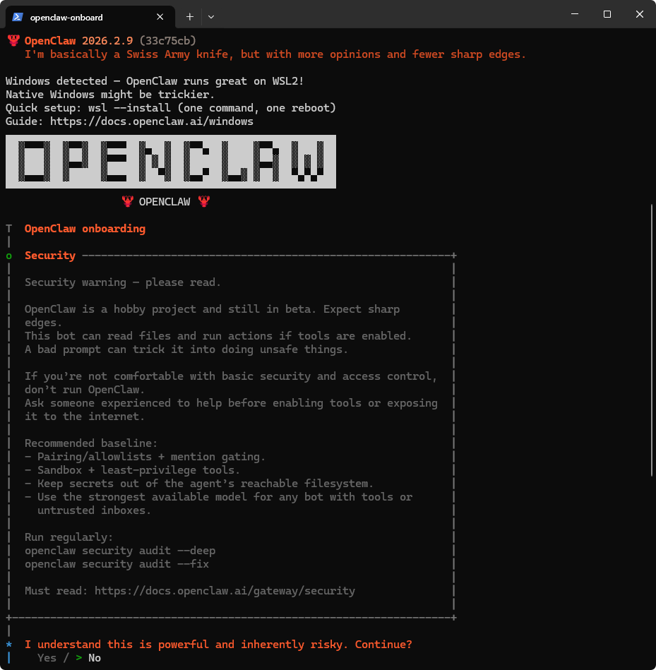 | I understand this is powerful and inherently risky. Continue? | 选择 Yes |