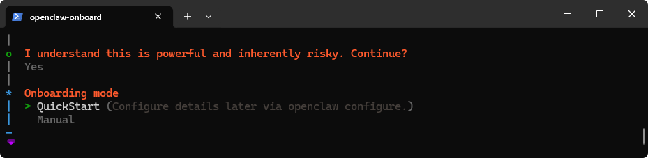 | Onboarding mode | 选择 QuickStart |