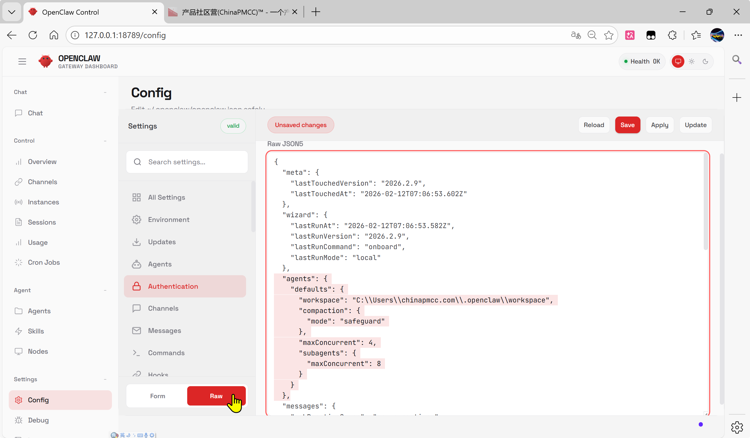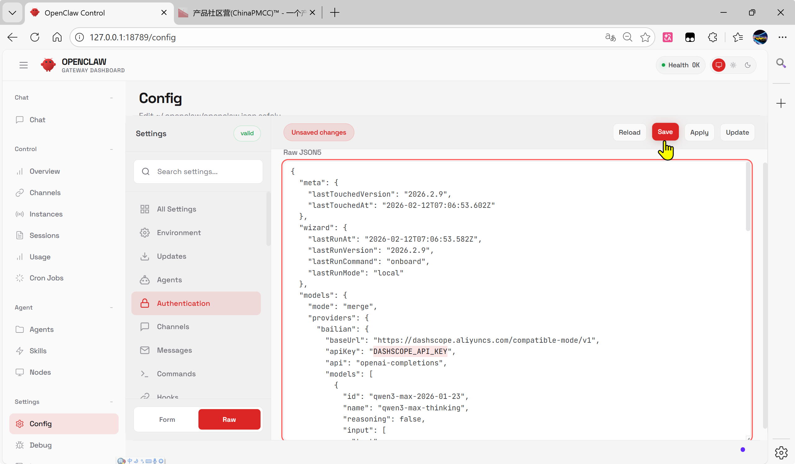 设置配置项 | 支持 JSON5/raw 文本 |