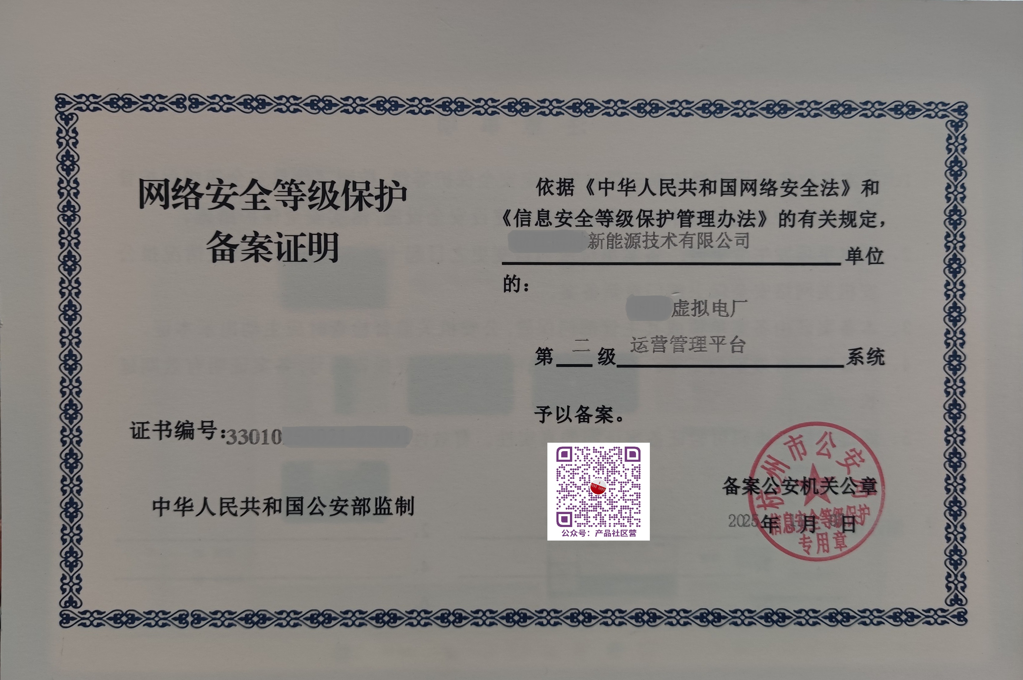 一、网络安全等级保护备案证明