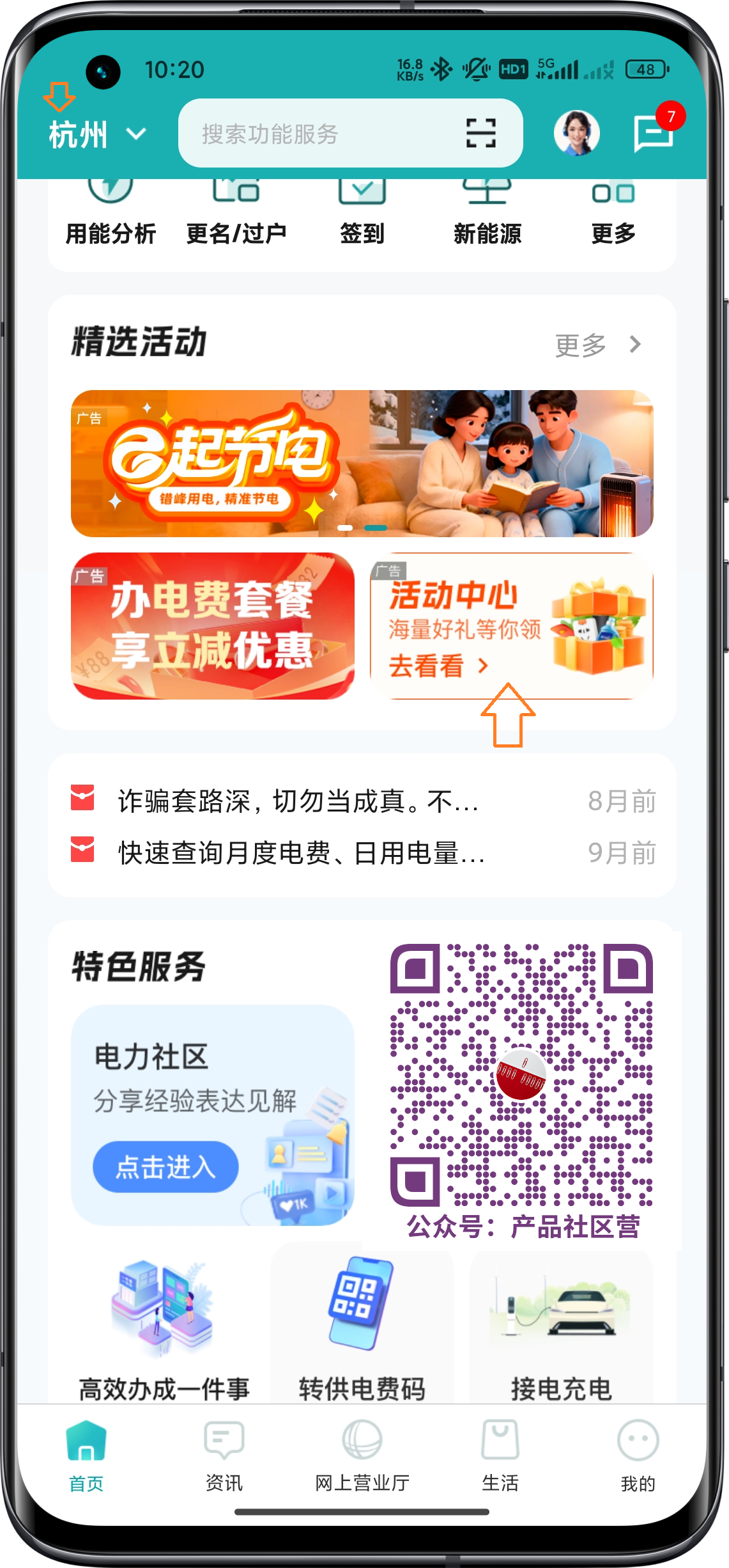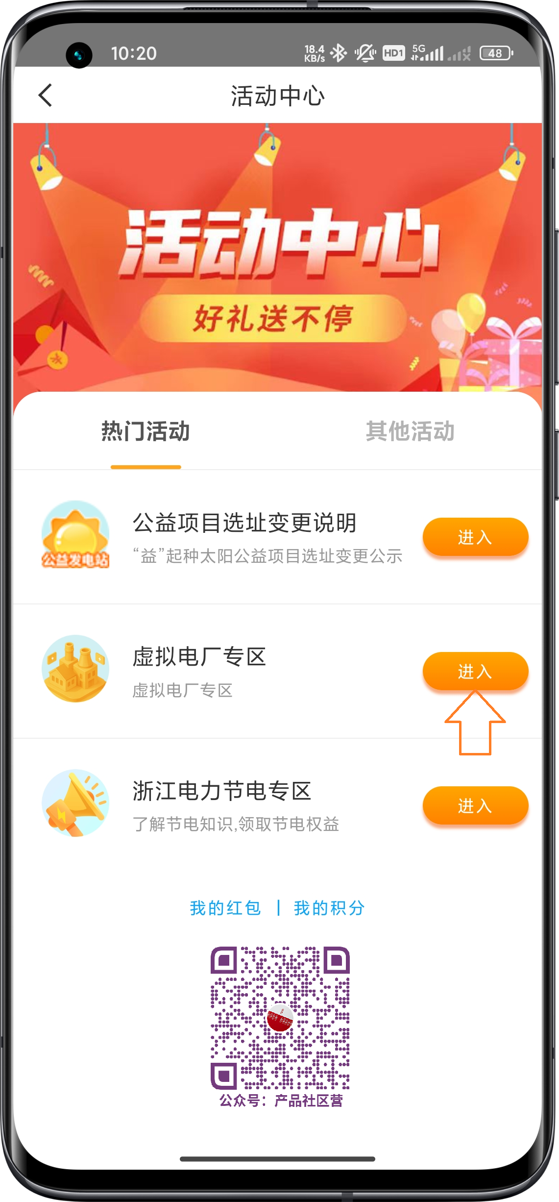 - 精选活动栏 点击 活动中心